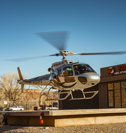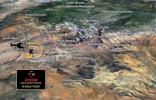 Our 15 mile Zion National Park helicopter flight allows you to take in beautiful scenery of the Virgin River Valley with amazing panoramic views of West Temple and the large Crater Hill Volcano located within the park!