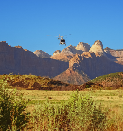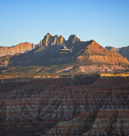 This once in a lifetime flight with spectacular views of West Zion, Kolob Canyons, & Smith Mesa is like no other, but the best part of this tour is yet to come with an aerial adventure over the breathtaking Canaan Mountain Wilderness Area where you will get a true helicopter experience when flying close to the amazing rock formations and right over 2,000’ sheer cliffs.
