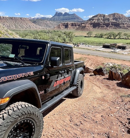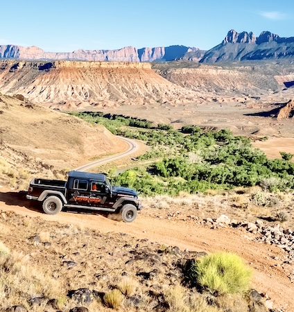 Your one-hour exclusive access jeep tour begins at Zion Rivers Edge Adventures, Zion Helicopters and Zion Jeep Tour Adventures. From there you will start your journey on our very own private off-road trek up to Zion Lava Ridge Mesa for some amazing Zipline Platform views of the Virgin River Valley, The Canaan's, and Smithsonian Butte. After loading back up, your adventure continues towards the base of Zion's West Temple, where you will enjoy a very short easy hike to a second very exclusive area and picture-taking opportunity right on the Zion National Park park boundary line called Zion Cliffside Point. This incredible private access location has vast views directly into Zion National Park, The Canaan Mountains, Smithsonian Butte, and The lush Virgin River Valley as well, all from this one stunning picturesque cliffside view point. Next your adventure will take you way back in time, and to the beautifully maintained historic ghosts town of Grafton, where you will have plenty of time to explore this little town along the River. For larger groups of up to 11, we offer a fully customized off-road safari vehicle like no other.