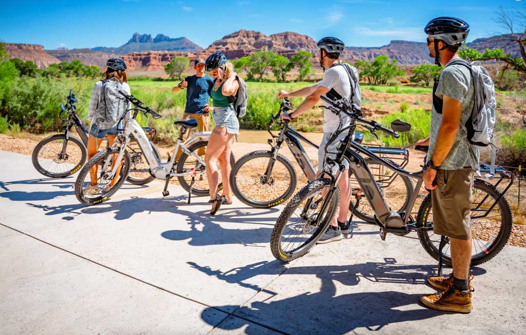 At Ride Zion, we have something for everyone. From full service, all-inclusive guided eBike and hike day trios to self-guided eBike tour through Zion. Our NEW and EXCLUSIVE one hour off road eBike ride starting from our Private River's Edge Viewing Point location overlooking the Zion River's Edge facility, will give you and exclusive off-road, ride like no other. Get up close to panoramic views of Zion's West Temple with guaranteed no lines, crowds or traffic to deal with, as you ride across the Zion Lava Ridge Mesa. Our eBikes have world class performance and include full-suspension electric mountain bikes capable of riding for up to 60 miles.